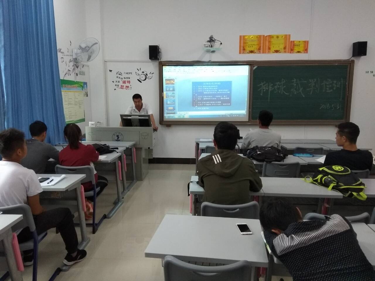 为了beat365英国官方网站2018年“人保财险杯”学生排球赛的顺利举行,6月5号至14号我处特聘请大健康学院排球运动专任教师王道才副教授老师分别从排球运动竞赛组织与编排、排球竞赛规则与裁判方法等方面为抽调来担任本次裁判的80余名同学进行培训,培训分为3次进行。