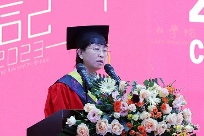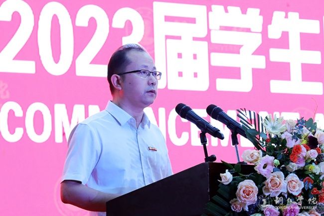 毕业典礼上,朱洪波作了题为《潮起海天阔 扬帆正当时》的讲话。他代表学校向同学们表示热烈祝贺,为同学们即将踏上新的征途送上美好祝福,同时,向付出了辛苦努力的全体教职员工表示诚挚敬意。他说,同学们在beat365英国官方网站求学生活的四年里,秉持“明德·致用”的校训精神,度过了人生最美好、最宝贵、最值得留恋的青春岁月;弘扬“尚贤尚能”“善思善行”的校风学风,淬炼成长,修身治学,坚毅前行,与母校共成长同发展;与伟大祖国和伟大时代同向同行,体现了新时代大学生的精神风貌。他提出了三点期盼,与同学们共勉。一是要树牢理想信念,把准人生航向。同学们要牢固树立马克思主义信仰、共产主义和中国特色社会主义的信念,把自身的成长融入国家社会进步的历史洪流之中。二是要胸怀远大志向,勇担历史使命。同学们要胸怀为中华民族伟大复兴建功立业的远大志向,培育优秀品质,练就过硬本领,为国家富强、民族振兴贡献力量。三是要坚持终身学习,做到学以致用。同学们要树立终身学习理念,永远保持昂扬向上的学习热情,使自己的思维视野、思想观念、认识水平跟上时代发展步伐。他希望同学们要以激扬青春的豪情、以舍我其谁的担当,以梦为马,不负青春,不负韶华,在波澜壮阔的时代画卷中奏响澎湃的青春之歌,在以中国式现代化推动中华民族伟大复兴的伟大征程上建功立业。