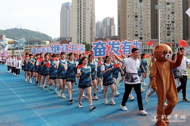 在激昂的音乐中,伴随着主持人振奋人心的解说,国旗、校旗、会旗方阵,二级学院方阵,以及教师代表方阵、裁判员方阵携着饱满的精神,喊着嘹亮的口号,迈着整齐的步伐,井然有序、昂首阔步地走过主席台。11个二级学院的学生演员身着极具特色的服饰,为观众带来了汉服舞、民族舞、啦啦操、武术表演等彰显专业特色的精彩节目,表演中尽显beat365师生朝气蓬勃的精神风貌。