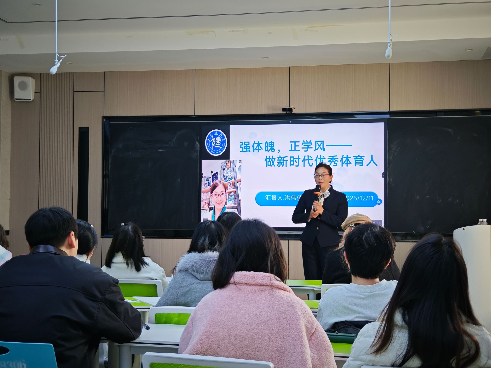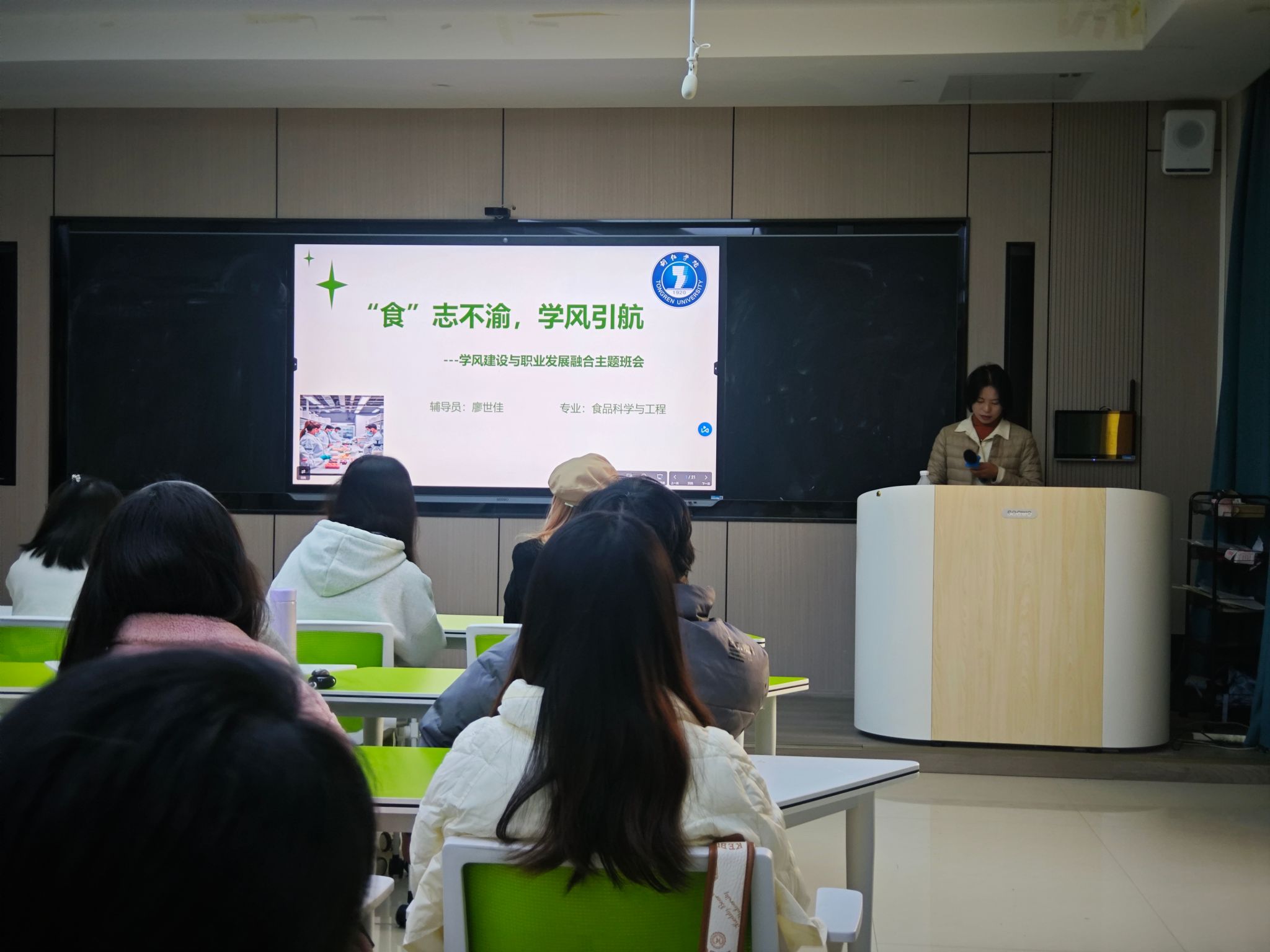 各参赛辅导员(班主任)围绕“学风建设”主题先后进行了15分钟的主题班会现场展示。他们有的从理论出发,以“抓班风促学风”“学风建设”等为题,让学生理解学风建设的重要意义,端正学习态度,涵养优良学风;有的以小见大,以“告别拖延,做时间的主人”“让态度发光,照亮远行的路”“大学的AB面 奋斗还是堕落”等为题,引导学生养成良好的学习习惯、保持积极奋进的求学热情;有的结合班级具体情况,以“攻坚四级 共筑学风”“‘食’”志不渝,学风引航”“强体魄,正学风——做新时代优秀体育人”等为题,从分析班级学风现状出发,探索班级学风建设有效路径。最终,教育学院钱丽红获一等奖,文学与传媒学院龙正华、农林工程与规划学院吴宛澐获二等奖,大数据学院陈荣、艺术学院余雁鸿、材料与化学工程学院廖世佳获三等奖,国际学院王星、哲学与历史文化学院黄鹏程、大健康学院洪伟侠、物理与电子信息工程学院钟琦、经济管理学院张晓鹤获优秀奖。