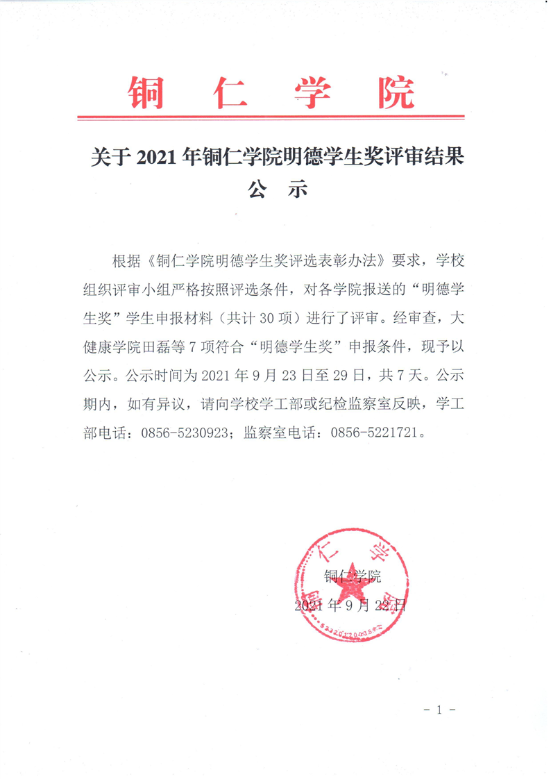 关于2021年beat365英国官方网站明德学生奖评审结果公示