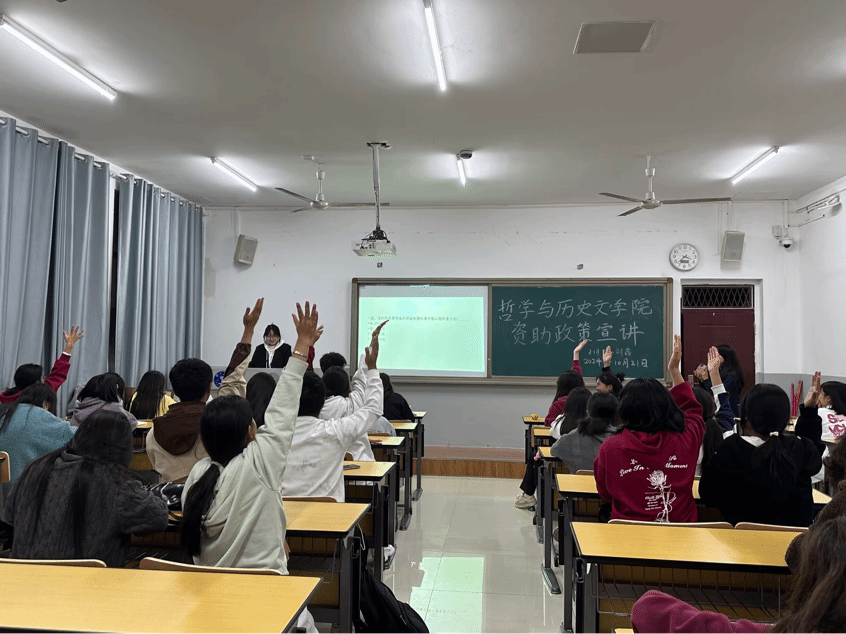宣讲活动中,宣传大使详细解读了国家当前的各类资助项目,让同学们对资助政策有了更深入的了解,并向同学们发放了相关的宣传资料,宣传资料以简洁明了的方式呈现了资助政策的要点,方便同学们随时查阅。为了鼓励同学们积极参与活动,活动过程中还进行了现场竞答,并对现场参与竞答的同学进行了奖励。
