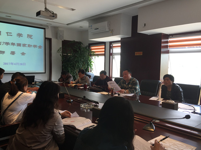 4月28日下午,学生资助管理中心在行政楼8312室召开2016—2017学年国家助学金评选部署会,参加会议的人员有学生资助管理中心主任石建成、副主任李光江和各专业学院分管学生工作的副院长和学生科科长。