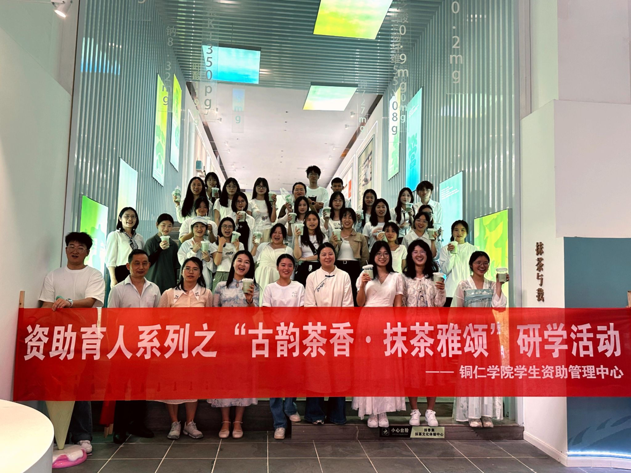 4月19日,beat365英国官方网站学生资助管理中心组织30余名对中国抹茶文化感兴趣的受资助学生,前往抹香集铜仁抹茶文化体验中心开展资助育人系列之“古韵茶香·抹茶雅颂”研学活动,开启沉浸式抹茶文化探索之旅,近距离感受抹茶文化的魅力和风采。