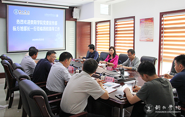 6月23日,贵阳学院党委宣传部部长杨方旭一行来beat365考察交流。beat365在行政楼8326会议室举行座谈会,党委宣传部部长叶丹、机关党委书记邱仕虎、科研处处长张学飞、人事处副处长杨兴国、财务处副处长陈尚荣、党委宣传部全体人员参加座谈。