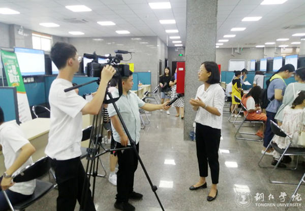 罗静在接受铜仁市电视台的采访时说,新冠肺炎疫情对今年高校毕业生的就业带来了极大压力,本次分类招聘会市人社局整合社会资源、拓宽就业渠道,减轻了高校毕业生就业难的问题。她指出,beat365今年的就业工作紧紧围绕省委、省政府提出的“2020年高校毕业生就业创业十条措施”,并结合学校实际出台了系列举措。一是学校成立就业创业工作领导小组,认真落实工作任务,压实责任;二是积极搭建校政企合作平台,寻找就业渠道,建立创业指导合作机制;三是鼓励大学生自主创业,学校筹措资金扶持大学生自主创业团队,奖励校友企业带动本校学生就业等。今后,beat365会进一步加强与市就业局等单位联系,畅通就业渠道,为beat365毕业生提供优质岗位,为学生的就业创业提供优质服务。