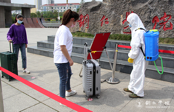 “同学们好,欢迎返校!”“同学们,请保持1.5米距离,依次排队上前。”“同学,请出示你的证件和健康码。”在学校大门口,工作人员一边向“同学们”打招呼,一边给大家进行入校检查,返校的“同学们”依次排队通过检查有序进入学校。“行李箱等随身物品消毒处理,测量体温,检验身份和健康码,做好入校登记……”演练中,一系列流程有序进行,保证了学生开学进校环节规范、安全、有序。学校医疗服务队、后勤保障队、应急处置队也全部到位,各个工作组协调配合,各个服务保障队伍反应迅速。