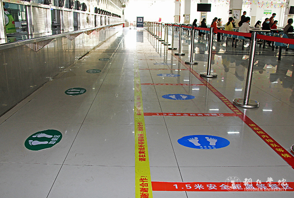 学生返校开学,食堂就得开放。如何保证恢复堂食、用餐有序?学校作了大量的准备工作。在食堂门口,放置的“疫情期间食堂供餐指示牌”“学生食堂就餐流程”特别醒目,给大家提供了明确的就餐指导和流程。“1.5米安全距离等候区”“取餐区”“就餐区”等一系列的提示标签和指示牌,从食堂门口到取餐窗口再到就餐座位,让大家一目了然。“师生”进入食堂,按照指示和工作人员引导,非常规范有序地排队等候、取餐、用餐和离开餐厅。