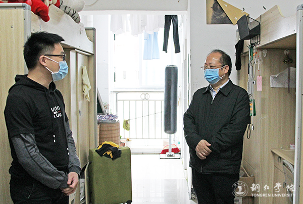 5月8日下午,校长侯长林,学工部部长张钱,保卫处处长陈尽东,党政办主任周永雄、副主任何波,教务处副处长冉耀宗等一行到学生公寓中心,看望返校学生,与学生交流,了解学生的学习生活情况。
