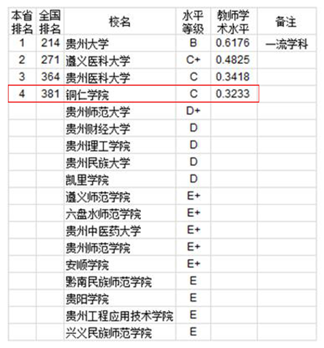 排行榜中贵州省排名表