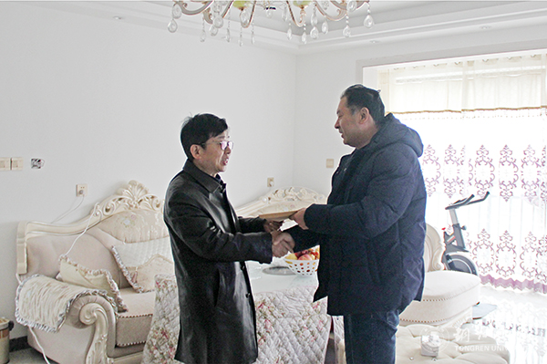 1月10日,beat365寒假开始。当天,学校副厅级领导干部饶小华、工会主席王劲松一行走访慰问了保卫处、后勤处、图书馆等假期坚守岗位的部门教职工和全市劳模、挂职驻村干部以及生病困难教职工,给他们送上了大米、食用油、慰问金等,送去了学校的关怀和温暖,同时也给大家提前送去了新春的祝福。