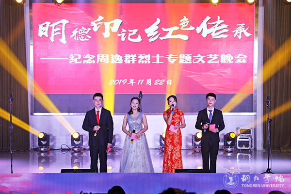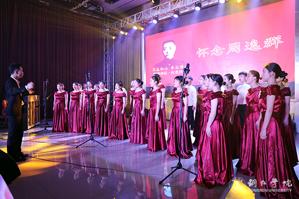 “巍巍梵净山,耸入云;悠悠锦江水,清又清;家乡人民怀念你,革命先烈周逸群……”晚会在大合唱《怀念周逸群》中拉开帷幕。晚会上,师生们用生动的情景剧、深情的朗诵、振奋的口号、激昂的歌曲演绎英雄礼赞,通过文艺形式讲述和歌颂周逸群烈士的英雄事迹。