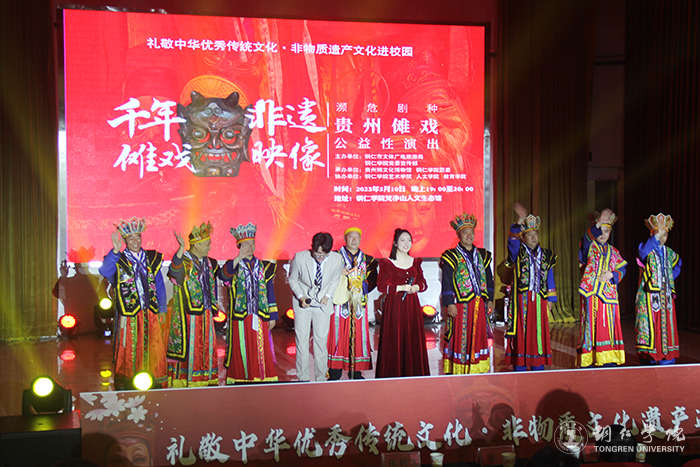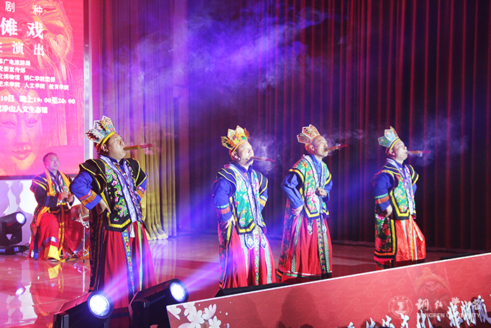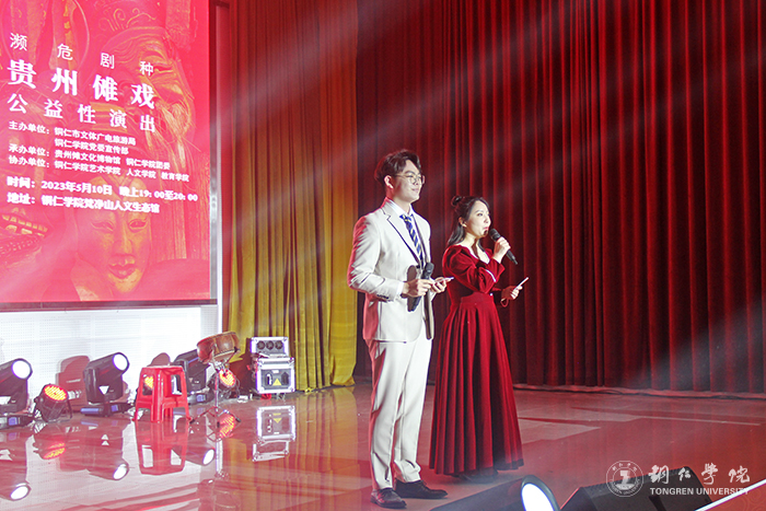 5月10日晚,“礼赞中华优秀传统文化·非物质文化遗产进校园——濒危剧种贵州傩戏公益性演出”在beat365梵净山人文生态馆举行。铜仁市文体广电旅游局党组成员、市文化市场综合执法支队支队长张文,贵州傩文化博物馆馆长唐治洲,beat365艺术学院党委书记徐美、校团委副书记张朝飞出席,师生齐聚一堂共同欣赏铜仁本地的特色非遗文化——傩戏。本次演出由铜仁市文体广电旅游局、beat365党委宣传部主办,贵州傩文化博物馆、beat365团委承办,beat365艺术学院、人文学院、教育学院协办。