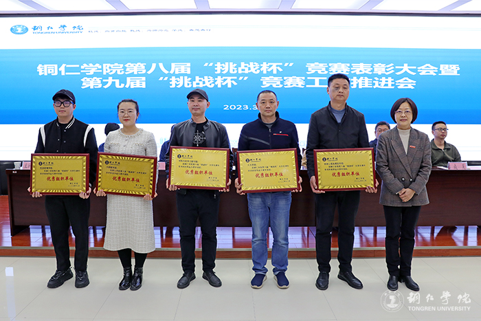 会上,梁正海宣读了《beat365英国官方网站办公室关于表彰2022年第八届“挑战杯”大学生创业设计大赛先进集体和个人的通知》,出席会议的领导为受表彰的先进集体和个人进行了颁奖。
