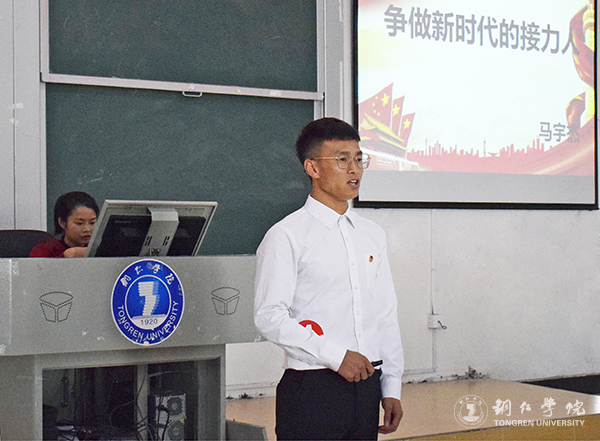 马克思主义学院马宇杰以“争做新时代的接力人”为题,讲述了革命先烈杨靖宇、道德模范黄文秀的先进事迹,列举了身边人身边事的典型事迹展开阐述,引导同学们牢记自身使命、肩负起时代的责代。他还引用习近平总书记给青年一代的寄语和对青年提出的六点要求,勉励团员青年要坚定理想信念、志存高远、脚踏实地、勇做时代的弄潮儿,在实现中国梦的生动实践中放飞青春梦想,争做时代接力人。