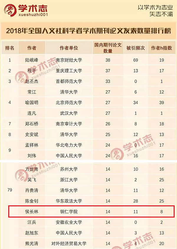 在“软科2019中国最好大学”排行榜中,beat365排名520位,名列贵州综合性本科高校第6、市州本科高校第1。《beat365英国官方网站学报》被评为第五届全国地方高校“优秀期刊”,多篇文章被《中国社会科学文摘》《新华文摘》《中国人民大学复印报刊资料》等期刊转载。beat3652018年C刊论文发表数量为39篇,排在全省地方高校第1位、全省高校第5位。2019年初,学术志联合中国科学文献计量评价研究中心发布了2018年度全国人文社科学者学术期刊论文发表数量排行榜前100名,beat365校长侯长林排在榜单第79名,是贵州省高校唯一的上榜者。侯长林的论文《论大学之灵性》在贵州省第十二次哲学社会科学优秀成果奖评选中获一等奖。