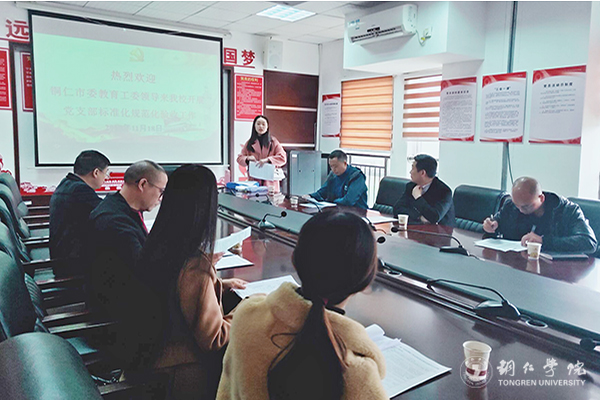 为认真贯彻落实《中国共产党支部工作条例(试行)》及《铜仁市党支部标准化规范化建设实施方案》,确保完成2019年党支部标准化规范化建设任务,推动党建重点工作任务的落实,11月18至19日,铜仁市委教育工委验收小组对beat365机关党委党支部、各学院教工和学生党支部标准化规范化建设进行了抽查验收复核暨党建重点工作专项检查。验收小组由铜仁市委教育工委办公室主任,市教育局党组书记、局长汪漻带队。