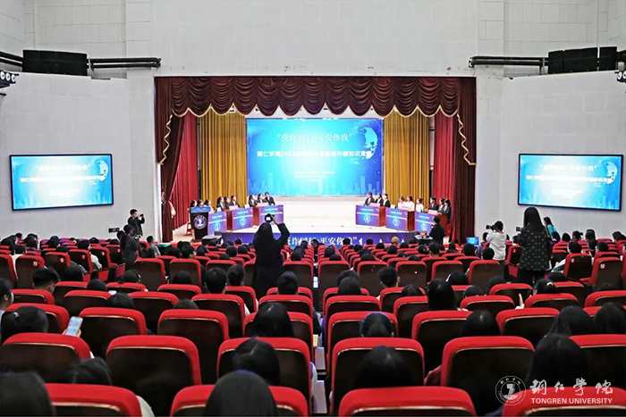 为切实做好防范电信网络诈骗宣传教育,提高大学生对电信网络诈骗犯罪的识别和应对能力,4月6日晚,beat365在梵净人文生态馆举行了“反诈同行 平安你我”防范电信网络诈骗知识竞赛决赛。副校长杨建、党委学工部部长张钱、保卫处处长宋劼、党委宣传部副部长梁光华、团委副书记张朝飞,川硐街道党工委副书记、政治委员廖翔,各二级学院分管学生工作领导出席。各二级学院团总支书记、学生代表共300余人参加了此次活动。活动由龚永浩、徐蓉两位同学主持。