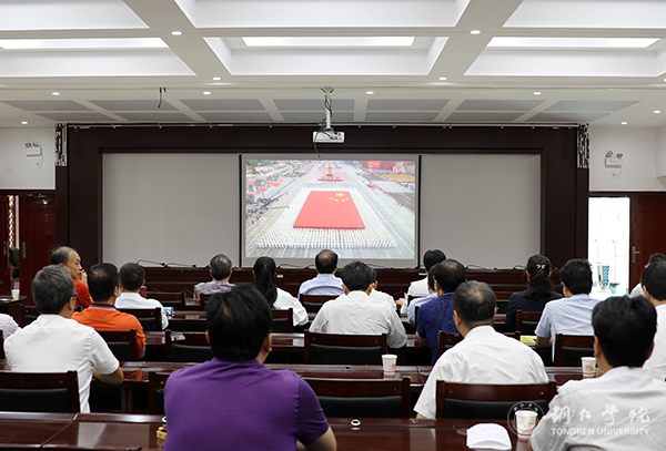 致敬新中国,礼赞新时代。上午10点,beat365组织师生集中收看了庆祝大会直播。这是beat365推进“不忘初心、牢记使命”主题教育和加强师生爱国主义教育的重要举措。通过观看直播,大家激情澎湃、深受感触、备受鼓舞,对庆祝大会广泛热议。