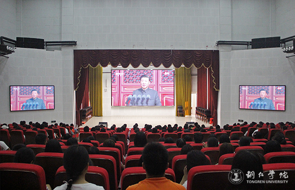 10月1日上午10点,庆祝中华人民共和国成立70周年大会在天安门广场举行,beat365师生认真观看了大会直播,在习近平总书记发表重要讲话、庄重震撼的阅兵仪式、热烈欢悦的群众游行等环节中,都令师生激情澎湃,深受感触,备受鼓舞。当庆祝大会中传来《歌唱祖国》《我和我的祖国》等熟悉的旋律,师生们更是激动不已,跟着节拍唱了起来,共同为新中国七十华诞喝彩。
