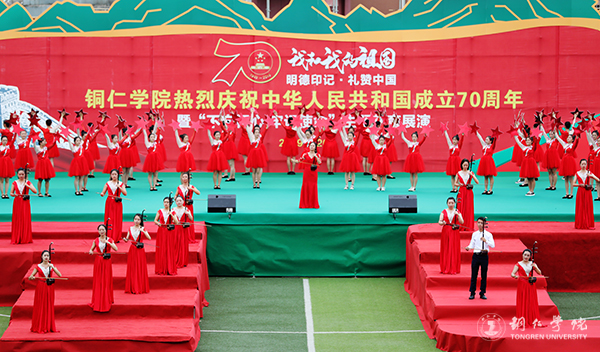 9月26日,学校在田径场举行庆祝中华人民共和国成立70周年暨“不忘初心、牢记使命”主题教育展演,万名师生齐聚一堂,明德学子载歌载舞,以一场别开生面的展演活动,向伟大祖国献礼,对伟大祖国告白。歌舞《今天是你的生日,我的中国》、表演唱《我爱你中国》、大歌舞《我和我的祖国》等节目震撼上演,全校师生放声歌唱,歌声欢乐嘹亮,将“我和我的祖国共成长,我和我的祖国齐歌唱”展现得淋漓尽致,大家挥舞着手中鲜艳的五星红旗,高唱着对祖国最美的赞歌,倾诉着对祖国最深的爱恋,共同祝福伟大祖国繁荣富强。此次展演活动的新闻报道和视频,分别登上了“学习强国”学习平台,获得了大家的一致好评和点赞,收到了很好的效果。