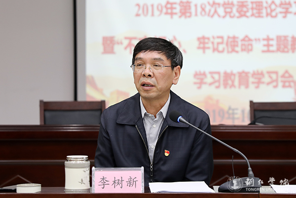 李树新就做好学校党建工作与业务工作提出五点要求:一是要坚定学校办学方向,走好具有鲜明特色的学校内涵发展之路;二是要联系中央和省委相关文件会议精神、联系主题教育思想、联系学校发展、联系师生关系做好工作;三是要以铁腕手段对症下药,彻底去除党群和党建中存在的新旧矛盾问题,打造特色思想政治工作体系;四是要从主题教育中挖掘思想精髓武装头脑,做到真学、真做(真用)、真信;五是要敢于说出问题,避免“两张皮”问题,收集师生反馈信息并及时处理,厘清新型师生关系。
