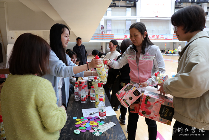 随着主持人一声令下,大家精神抖擞,热情高涨,纷纷加入到各项趣味活动当中,现场一片热闹非凡。“开、合、开、合、开开合……”在竹竿舞现场,伴随竹竿的“啪啪”声,老师们三五人一组,踏着节奏,跳起了紧张而有趣的竹竿舞。“一人口手并用比划引导,一人心领神会快速猜题,两人配合默契十足。”在你比我猜现场,老师们自由组合,两人一组,玩起了表达力与想象力高度结合的智力游戏。还有花样跳绳、蒙眼敲鼓、抖乒乓球等游戏,不仅考验着老师之间的协作能力,而且考验着老师个人的身体素质,活动具有挑战性又不失趣味性。活动中,老师们敢于挑战,积极参与,欢声笑语萦绕在整个场馆,充分展现了新时代妇女良好的时代风貌,展现了beat365英国官方网站人良好的精神状态。