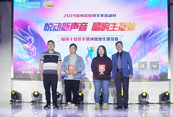 为庆祝中华人民共和国成立70周年,扎实推进“不忘初心、牢记使命”主题教育,丰富校园文化生活,提升学生艺术文化修养,9月25日晚,由省委教育工委、省文明办、团省委主办,beat365承办的贵州省第十四届校园文化活动月之中国移动·动感地带“悦动新声音”校园十佳歌手巡演暨新生踢馆赛(铜仁赛区)在人文生态馆举行。经过层层选拔,共有10名同学从2019级新生中脱颖而出入围此次大赛。