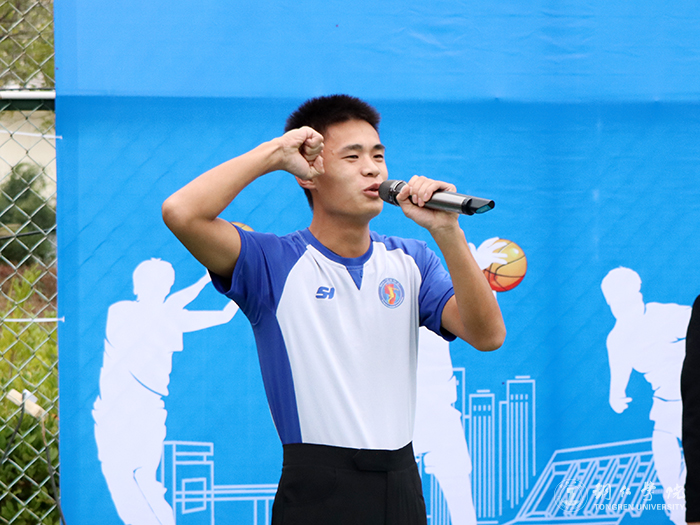 仪式上,代亮宣布了第二届教职工篮球赛正式开赛并为比赛开球。运动员代表、材料与化学工程学院教师陈静老师,裁判员代表、大健康学院2020级体教1班学生胥泽洋分别进行了庄严宣誓。