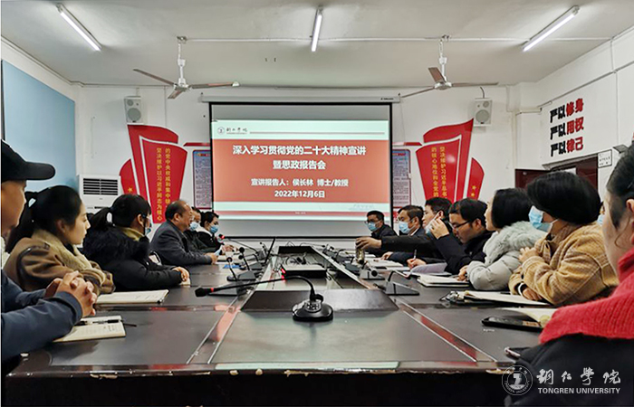 12月6日晚,校长侯长林在明理楼B三楼会议室为教育学院师生开展党的二十大精神宣讲暨思政报告。教育学院党委书记崔德虎主持会议。该院党委委员、领导班子成员以及各党支部书记、各系各科室负责人和师生代表参加会议。