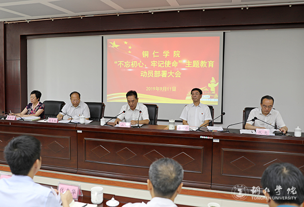 会议指出,召开“不忘初心、牢记使命”主题教育动员部署会议,主要任务是深入学习贯彻习近平新时代中国特色社会主义思想和党的十九大精神,认真学习贯彻落实中央、省委关于启动第二批“不忘初心、牢记使命”主题教育的部署精神,全面落实中央、省委、市委的工作要求,对学校开展主题教育作安排部署,动员全体党员干部提高政治站位,扛起政治责任,以高度的政治责任感,认真负责地把主题教育组织好、开展好,确保取得实效。