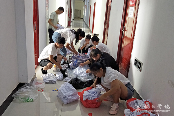 志愿者在整理生活用品