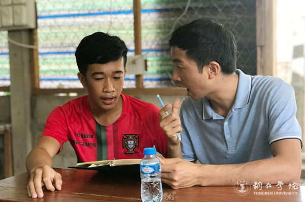 “老挝琅南塔省教育厅汉语预科班是为老挝学生提供中国求学的唯一机会。上午我们如约见到了老挝学生,短暂交流后了解了他们对于中文的掌握程度。在一天的试课中,即使语言不同,但我们依旧交流得很好,一场跨越国土的支教使得我们能够去感受不同土地滋养下的人文情怀。”A班的志愿者说到。