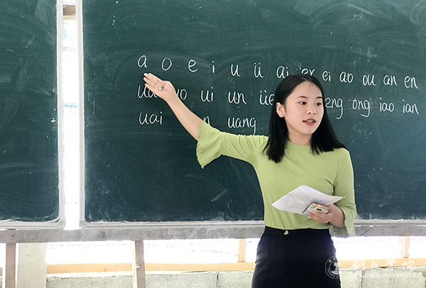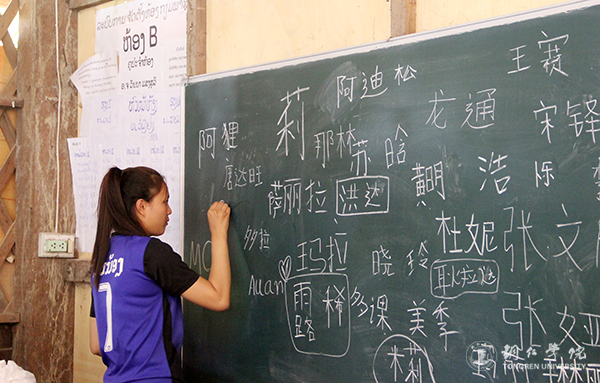 “见到了老挝学生,我们简单进行了自我介绍,然后我根据同学们的名字读音给每个学生取了中文名,再让同学们进行中文自我介绍。上午课程即将结束时,我们的志愿者还向学生学习了几句日常的老挝语。求知的热情穿越了文化的阻隔,一天下来,我们之间的交流愈发顺畅,我也很期待未来的时光。”C班的志愿者说到。