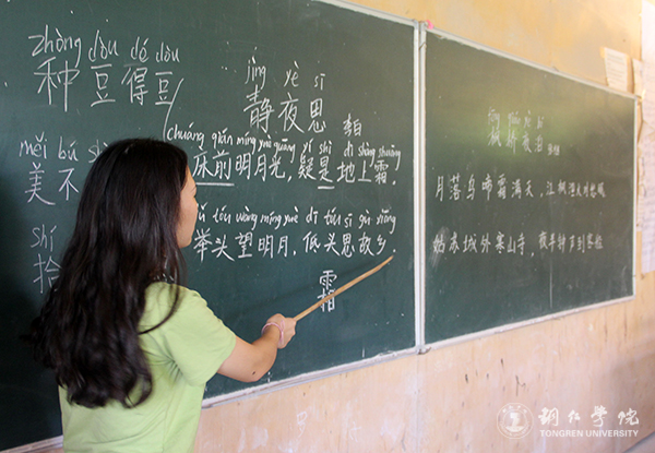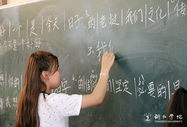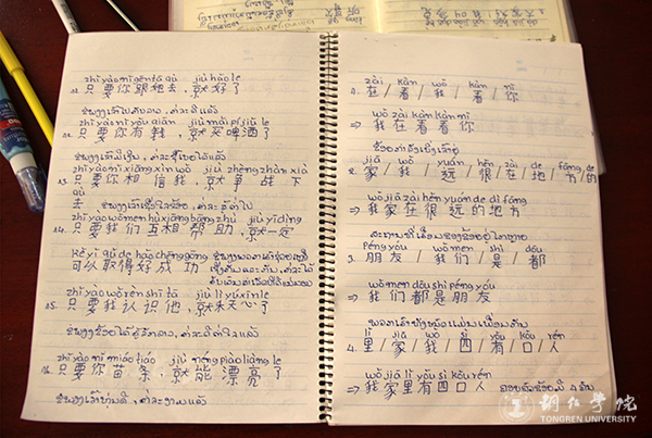 B班的志愿者说:“初入班级却并不显生疏,他们都很健谈、很活泼。同学们互帮互助跟进课程进度,大家学习中文的热情普遍很高,很多人都想到中国上学。下午的课程,我们主要针对中文四级的考试内容进行句子排序,老挝的学生们十分认真第跟着老师大声读写。热情是学习最好的老师,相信他们会取得更大的进步。”