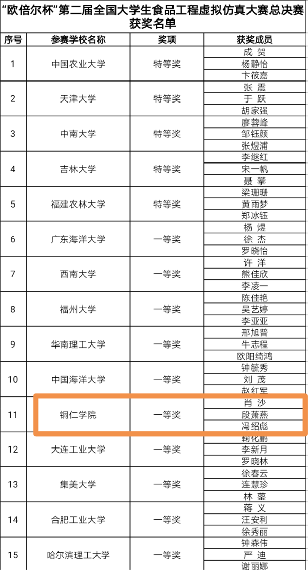此前,beat365材料与化学工程学院经选拔推选了2017级食品科学与工程专业三支队伍参加了西部赛区的选拔,从20多所高校的53支队伍中脱颖而出,其中李青山、李瑞琳、马旋团队荣获二等奖,程祉豪、高荣美、罗燕团队荣获一等奖,冯绍彪、肖沙、段萧燕团队以特等奖的好成绩进入全国决赛。