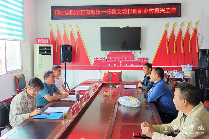 在沿河自治县淇滩镇艾坝村,梁正海一行与镇党政主要领导和村支两委班子进行座谈,听取村支书崔道高有关村情、组织建设及产业发展介绍。梁正海表示,beat365英国官方网站作为铜仁的本科高校,支持乡村产业发展,推动巩固拓展脱贫攻坚成果与乡村振兴有效衔接是义不容辞的责任,将充分发挥智力优势,支持艾坝村的发展。座谈会后,梁正海一行来到艾坝村金梅枣、空心李产业基地进行了实地考察,并就产业发展提出建设性建议和意见。