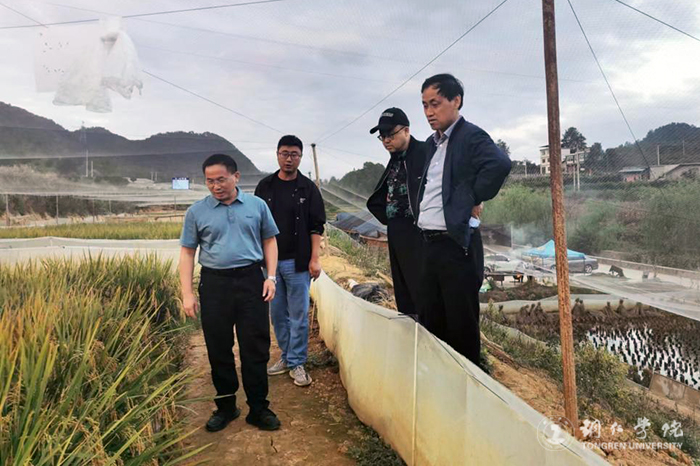 在德江县共和镇茶坨村,梁正海听取了beat365驻村干部袁记平博士的驻村工作汇报,叮嘱他要保重身体,认真做好疫情防控;在合兴镇龙溪村,实地察看了稻蛙综合种养基地,希望驻村干部刘朋远博士认真总结稻蛙种养经验,努力为探索山地特色农业、促进群众增收,贡献更多beat365英国官方网站智慧。在石阡县龙井乡猫寨村,实地考察了农田灌溉水源,就引进稻蛙综合种养技术与陪同的乡领导和驻村第一书记代景忠博士进行深入交流;在石固乡王家沟村座谈交流时,梁正海叮嘱驻村第一书记冉显礼及村支两委班子认真落实亮化项目,确保项目经费落地见效。