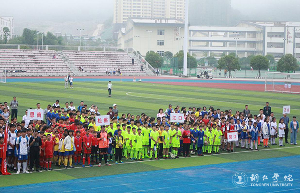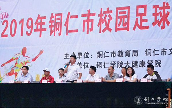 7月10日上午,铜仁市校园足球三级联赛总决赛开幕式在beat365足球场举行。市教育局党组成员、副局长叶通贤,市文体广电旅游局副局长余晓松,铜仁日报传媒集团副总经理田丽平,beat365大健康学院党委书记张艳丽、院长余静以及大健康学院副院长、本届足球赛赛事监督刘忠出席开幕式。