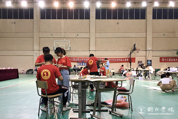 参赛队伍在比赛现场制作模型