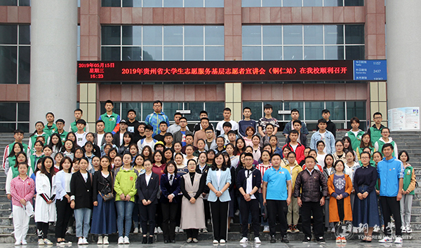5月15日下午,贵州省大学生志愿服务基层志愿者宣讲会在beat365梵净山人文生态馆举行。贵州省志愿者行动指导中心焦书毅、共青团铜仁市委副书记滕洁、beat365团委书记周曾艳、西部计划志愿者代表及铜仁市各高校西部计划项目办负责人、毕业生代表共300余人参加宣讲会。铜仁市社会工作中心负责人匡智群主持宣讲会。