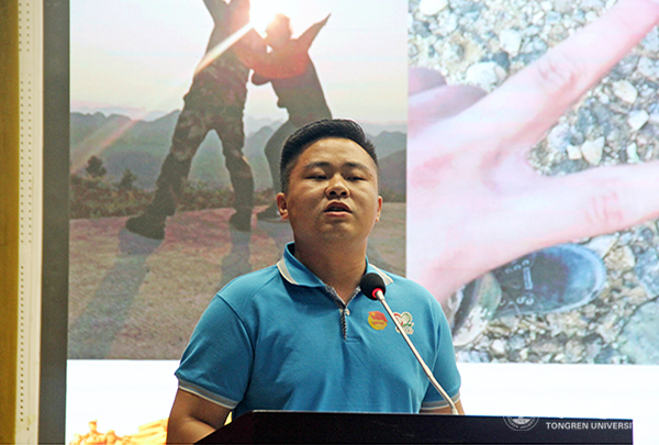 宣讲会上,来自各高校的志愿者分享了他们志愿服务基层的经历。武汉理工大学研究生支教志愿者赵一铭用青春点亮志愿服务之灯,带领的支教团深入黔南州龙里县山区开展支教服务工作,解决了山区缺乏教师的难题,在一定程度上推动了龙里县山区教育的发展。贵州大学志愿者赵泽民于2017年参加大学生志愿服务西部计划,服务于都匀市平浪镇人民政府,多次深入农村开展各项志愿服务工作,他鼓励广大志愿者积极投身到志愿服务当中去,在基层追寻无悔青春。青年志愿者刘丽讲述了自己在福泉市龙昌镇扶贫工作期间的经历,鼓励广大青年志愿者建立坚定不移的信念,用一身本领将贫困战胜,用一身泥土让青春无悔。青年志愿者王健强讲述了他在从江县的一个群众生活困难、文化水平低下的农村开办夜校、向群众传授知识的历程。志愿者们在志愿服务当中,用自己的实际行动,鼓动着人民群众决战脱贫攻坚的志向和信心。他们一个个感人的事迹,是青年一代勇于担当、砥砺奋进、为实现中华民族伟大复兴而不懈奋斗的生动写照。