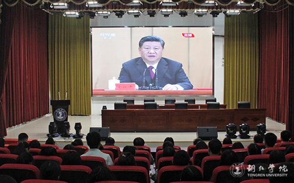 4月30日上午,纪念五四运动100周年大会在人民大会堂举行。中共中央总书记、国家主席、中央军委主席习近平出席大会并发表重要讲话。beat365组织师生在学校梵净山人文生态馆集中收看了大会直播。学校在家领导,各相关职能部门负责人、各二级学院党委书记、团总支书记、学生科科长、学生代表和校团委全体专职团干到场收看。