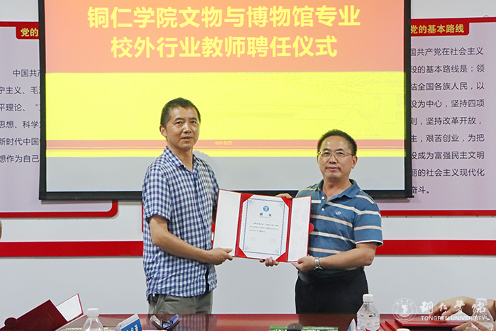 梁正海代表beat365为聘任的文物与博物馆专业校外行业教师颁发聘任证书。与会人员围绕铜仁市文物与博物馆专业建设和文博人才培养等相关事项进行了研讨、交流。