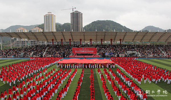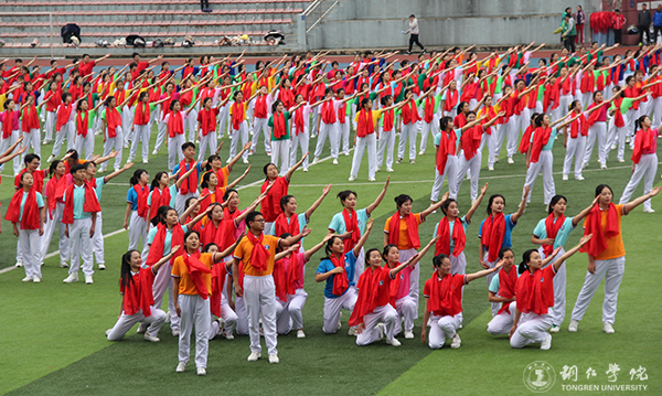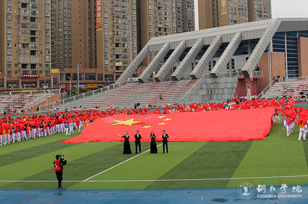 在慷慨激昂的音乐声中,开幕式拉开序幕。欢乐的海洋在汇聚,盛大的节目已开启。激动人心的开幕式表演独具匠心、刚柔并济,文美中劲透刚强、悠长里雄音激荡,瞬间将全场的气氛推向高潮。一曲《我爱你中国》,一段段精彩舞蹈将铜院学子的活力与激情展现得淋漓尽致,现场师生心中荡漾着对祖国的崇高之爱。