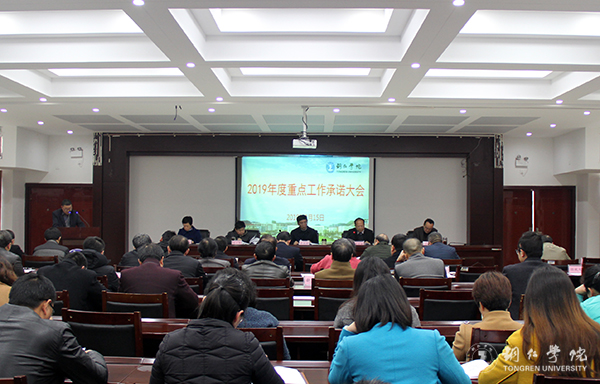 3月15日,beat365在行政楼8501会议室召开2019年重点工作承诺大会。党委书记李树新,校长侯长林,党委副书记饶小华,副校长代亮、罗红芳,各二级学院、职能部门领导干部参加会议。会议由侯长林主持。