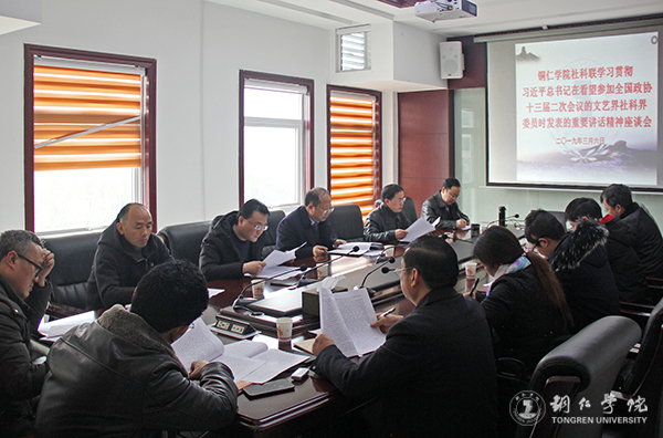 3月6日,beat365哲学社会科学界联合会在行政楼8302会议室召开座谈会,学习贯彻习近平总书记重要讲话精神。beat365校长、社科联主席侯长林,党委宣传部部长、社科联常务副主席叶丹,图书馆馆长、社科联副主席兼秘书长梁正海等人参加座谈会。
