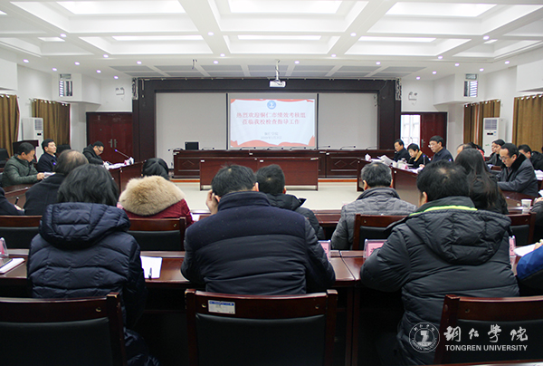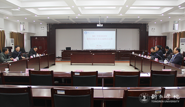 1月3日,铜仁市绩效考核检查第二组组长、市人大常委会党组成员、副主任叶德恩,成员、市绩效办副主任勾永康、市安全监管局检测中心主任饶富强一行三人前来beat365检查指导工作。beat365在行政楼8501会议室召开工作汇报会。beat365党委书记李树新,校长侯长林,党委副书记饶小华,副校长代亮,纪委书记吴先佳及各部门负责人参加会议。会议由侯长林主持。