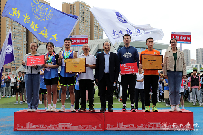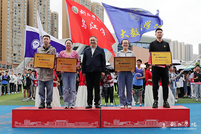 闭幕式上,宣布了本届运动会竞赛成绩。在团体总分方面,大数据学院、大健康学院并列获第一名,人文学院获第二名,教育学院获第三名。在先进集体方面,农林工程与规划学院、大数据学院、经济管理学院获精神文明奖,乌江学院获体育道德风尚奖。在欢乐的音乐声中,出席闭幕式的领导为获奖集体和个人进行了颁奖。