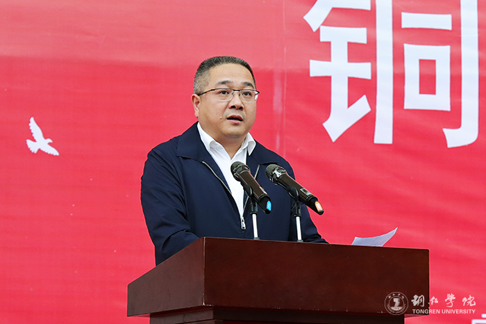 杨建在致辞中代表学校向全体裁判员、工作人员和积极参与本届运动会的老师们、同学们表示衷心的感谢,向运动健儿在赛场上展现出友谊、团结、拼搏的精神表示崇高敬意。他指出,入场式的整齐队伍、开幕式的精彩节目、比赛中运动员的顽强拼搏精神、此起彼伏的啦啦队的加油声、一篇篇令人振奋的通讯稿、一个个忙碌的志愿者的身影等等,充分体现了此次运动会“喜迎二十大,奋进新征程,建功新时代”的主题,展示了当代青年的青春风采。他强调,我们要积极响应习近平总书记关于建设健康中国、体育强国的号召,养成良好健康习惯和健康生活方式。全校师生要把运动场上努力拼搏、团结奋进的精神内化为加强身体锻炼、增强学习动力的力量,更要秉承“明德·致用”的校训,成为德才兼备、身心健康的高素质人才,争取在青春的赛道上跑出当代青年的最好成绩。